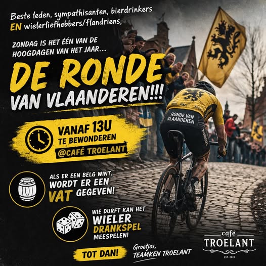 Vanaf 13u te bewonderen @café Troelant. Als er een Belg wint, wordt er een vat gegeven! Wie durft kan het wieler drankspel meespelen?